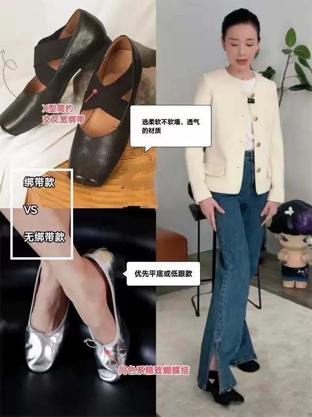 虽然推荐大家选择低跟的单鞋来穿搭,但是鞋底千万不要太薄,我选择的鞋底很薄的情况下,那么很难保护我们的脚底板,也要适当有点厚度,穿起来也才舒适。